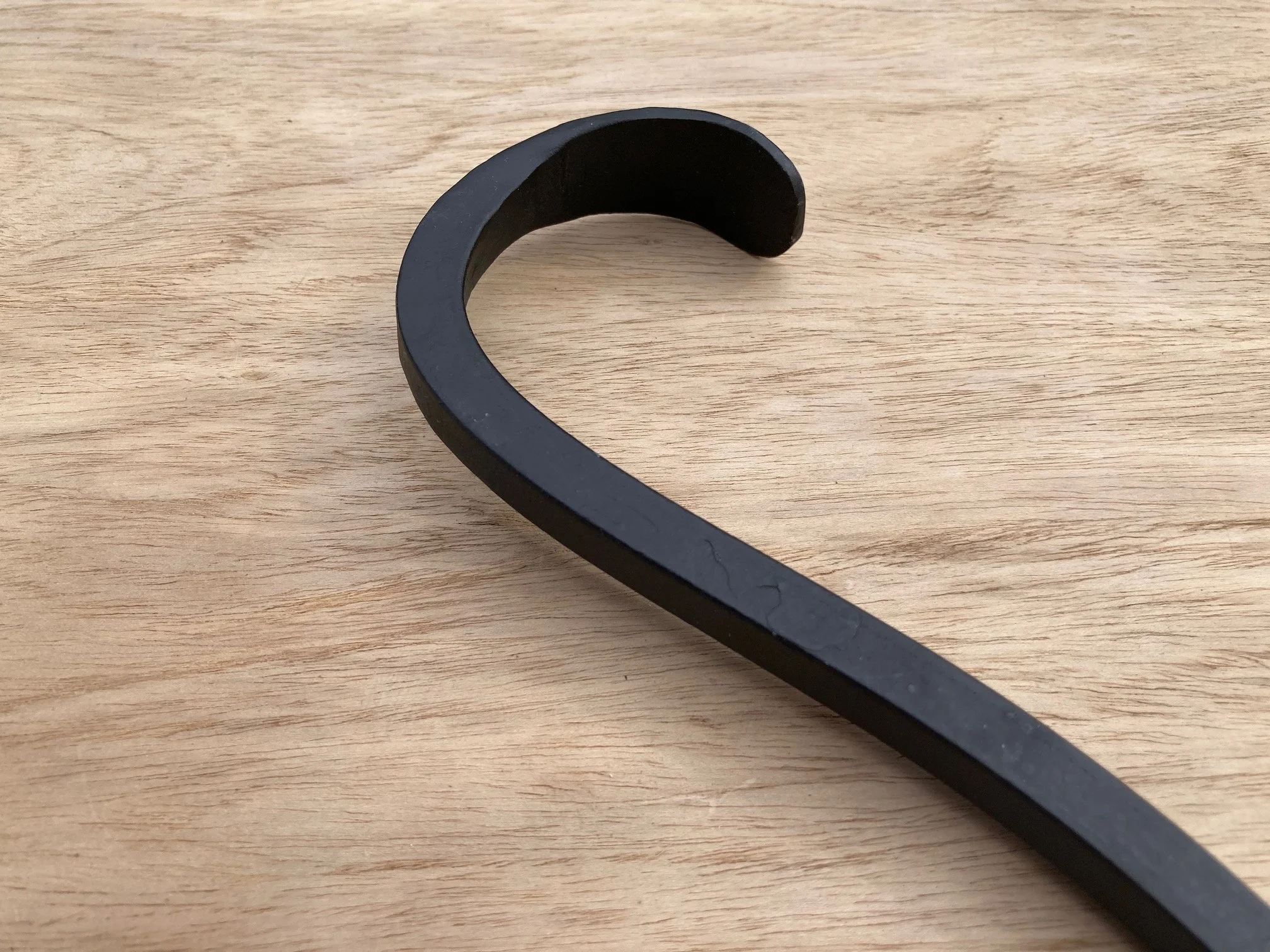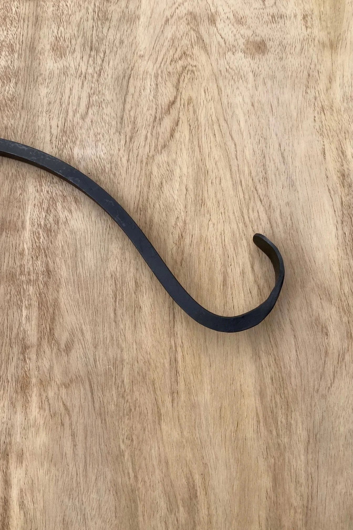 Hand forged steel horse shoe hook. Hang any small item in your home, shop or barn. If it needs to be hung, this will do it! Approx 4”H x 3.5” D. Please note that square nail holes have been drilled round for your hangin hardware (not included)